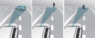 قد يعمل نظام المساعدة على تجنب الاصطدام من الجهة الأمامية عند اكتشاف جسم له شكل أو هيئة مشابهة لسيارة ما أو لأحد المشاة أو راكبي الدراجات.
