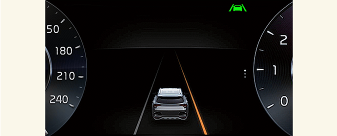 ) الأخضر، وسيومض خط الحارة المرورية على مجموعة العدادات، وستنفذ عجلة القيادة تعديلات للحفاظ على السيارة داخل الحارة المرورية.