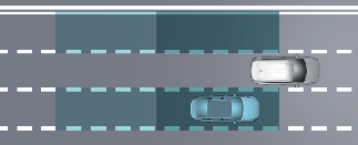 قد يختلف نطاق الاكتشاف تبعًا لسرعة سيارتك. ومع ذلك، قد لا تحذرك الوظيفة، إن كانت هناك سيارة في المنطقة المحجوبة، عندما تمر بجوارها بسرعات عالية.