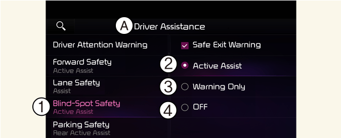 المساعد النشط: سيحذر نظام المساعدة على تجنب الاصطدام في المنطقة المحجوبة السائق برسالة تحذيرية، وتنبيه صوتي واهتزاز لعجلة القيادة (إذا كانت السيارة مجهزة بذلك) وسيتم تعشيق مساعد الفرامل تبعًا لمستويات خطورة الاصطدام.