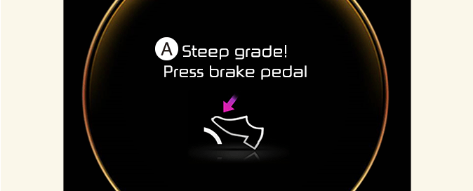 A: Pendenza ripida! Press brake pedal (Premere freno)