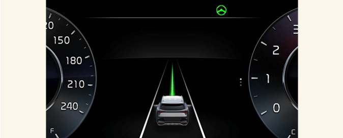 a 180 km/h (110 mph), Assistenza centraggio corsia aiuterà il veicolo a centrare la corsia assistendo il volante. La spia