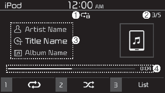 Information (informații): Afişează informaţii despre melodia aflată în curs de redare.