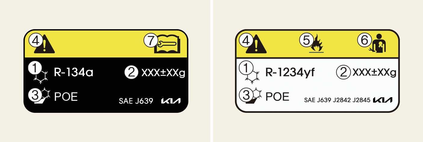 Bk. Klima kompresörü etiketi/soğutucu akışkan etiketiklima soğutucusu etiketinin yeri hakkında daha fazla bilgi için.