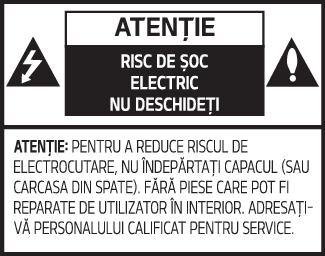Pentru a reduce riscul de electrocutare, nu îndepărtați capacul sau carcasa din spate a acestui produs. Nu există piese care pot fi reparate de utilizator în interiorul dispozitivului. Adresați-vă personalului calificat pentru service.