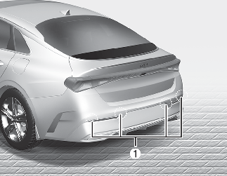 L’avertissement de distance de stationnement en marche avant/arrière avertit le conducteur par un témoin ou un signal sonore si une personne, un animal ou un objet se trouvant à une certaine distance est détecté par les capteurs ultrasoniques avant / arrière (1) pendant que le véhicule avance ou recule à faible vitesse.