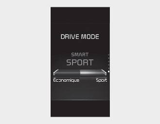 Lorsque le côté gauche de la jauge de style du conducteur est rempli et après un certain temps, le mode SMART ECO est automatiquement activé. Lorsque le côté droit de la jauge est rempli et qu'une condition de conduite sportive est détectée, le mode SMART SPORT est activé.