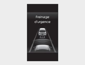 Pour avertir le conducteur de l’application automatique du freinage d’urgence, le message d’avertissement « Freinage d’urgence » s’affiche sur le tableau de bord et un signal sonore retentit.