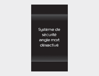 Si le moteur est redémarré alors que le système est désactivé, le message « Blind-Spot Safety System is Off » (Système de surveillance des angles morts désactivé) s’affichera sur le tableau de bord.