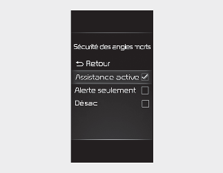 Paramètres d'assistance à l'évitement de collision dans l'angle mort