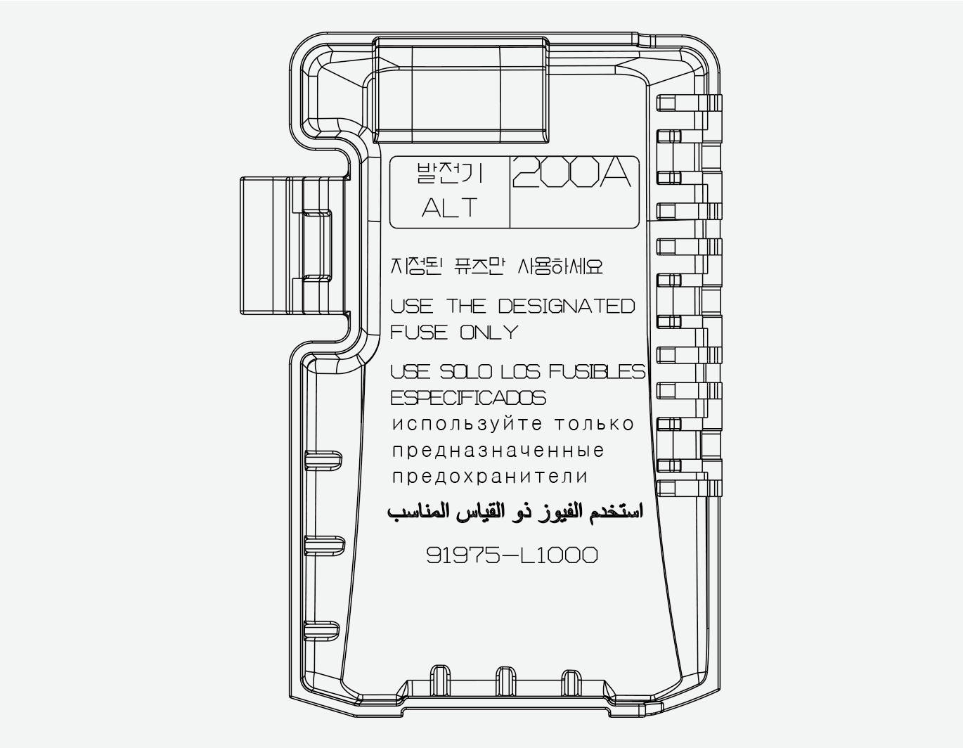Bloc PCB (Relai contrôle de moteur, Fusible - Air climatisé1, Essui-glace1, TCU1 (Unité de contrôle de transmission), klaxon, ECU2 (Unité de contrôle de moteur)) |