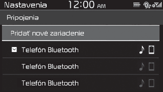 Pred pripojením zariadení s Bluetooth zaparkujte vozidlo na bezpečnom mieste. Nepozornosť počas vedenia vozidla môže spôsobiť dopravnú nehodu a následne zranenia alebo usmrtenie osôb.