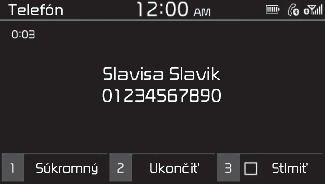 Po pripojení mobilného telefónu k systému môže byť zvuk hovorov vedený cez reproduktory vozidla aj potom, ako opustíte vozidlo, ak je telefón v dosahu pripojenia. Ak chcete ukončiť pripojenie, odpojte zariadenie zo systému alebo deaktivujte funkciu Bluetooth v zariadení.