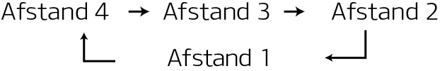 Hver gang der trykkes på knappen Køretøjsafstand, ændres køretøjsafstanden som følger: