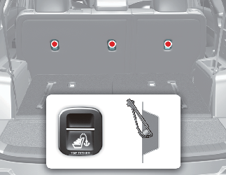 LATCH anchors have been provided in the left and right outboard rear seating positions. Their locations are shown in the illustration. There are no LATCH anchors provided for the center rear seating position.
