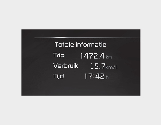 Het display toont de geaccumuleerde ritafstand, het gemiddelde brandstofverbruik en de totale rijtijd.