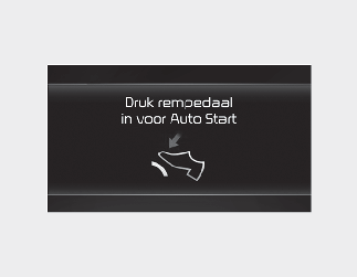 Als u, nadat de motor automatisch is uitgeschakeld, de transmissie van N naar D (handmatige stand) of R schakelt zonder het rempedaal in te trappen, start de motor niet automatisch opnieuw en klinkt er een waarschuwingssignaal. Wanneer dit gebeurt, moet u het rempedaal intrappen om automatisch te starten.