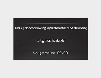 Wanneer de bestuurder de Driver Attention Warning reset, wordt het tijdstip van de vorige pauze ingesteld op 00:00 en wordt het aandachtsniveau van de bestuurder ingesteld op Hoog.
