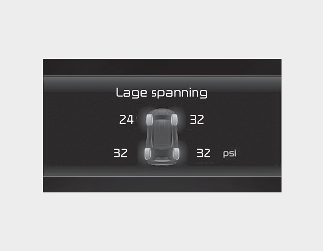Wanneer de waarschuwingslampjes van het controlesysteem lage bandenspanning branden en er een waarschuwingsmelding op het LCD-scherm in het instrumentenpaneel wordt weergegeven, is de bandenspanning van een of meerdere banden te laag. Het waarschuwingslampje positie lage bandenspanning geeft aan welke band een te lage bandenspanning heeft doordat het bijbehorende lampje gaat branden.