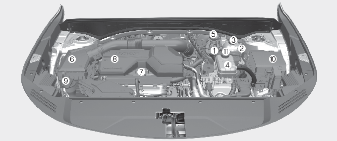 * Rzeczywisty kształt komory silnika w pojeździe może być inny niż na ilustracji.