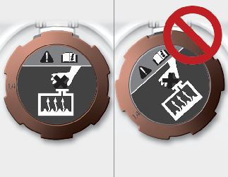 Pod żadnym pozorem nie wolno zdejmować korka zbiornika wyrównawczego płynu chłodzącego falownika, gdy silnik i chłodnica są gorące. Z powodu dużego ciśnienia może dojść do wyrzucenia gorącego płynu chłodzącego lub jego oparów, a w efekcie do poważnych obrażeń ciała.