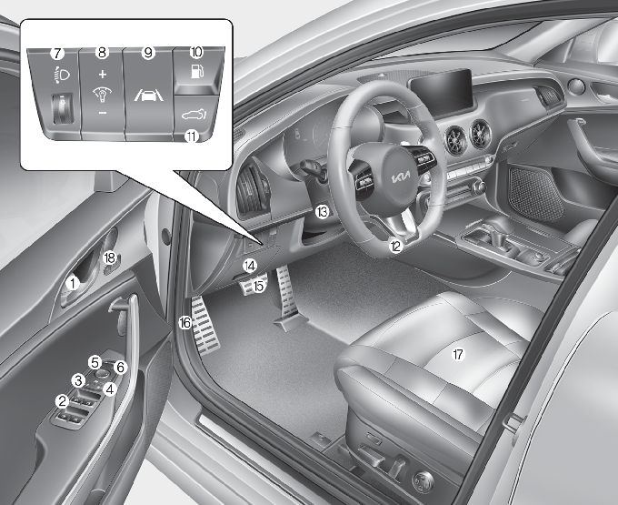 * 본 도안은 실제 차량과 다를 수 있습니다. (스위치의 모양 및 배열은 사양 적용에 따라 달라질 수 있습니다.)
