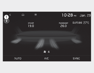 공조화면 선택버튼을 누르면 화면에 공조정보에 관한 화면을 표시합니다.