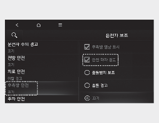 선택을 해제할 경우 기능의 도움을 받을 수 없으니 항상 주의하여 운전하십시오.