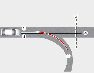 • 곡선로의 곡률이 너무 크거나 작은 경우 내비게이션 기반 스마트 크루즈 컨트롤이 작동하지 않을 수 있습니다.