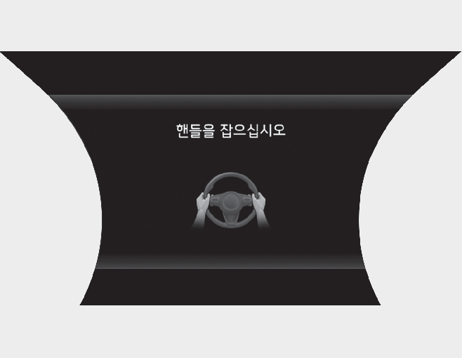 운전자가 스티어링 휠을 일정 시간 동안에 잡지 않을 경우, 단계적으로 핸즈 오프 경고문이 표시되고 경고음이 울립니다.