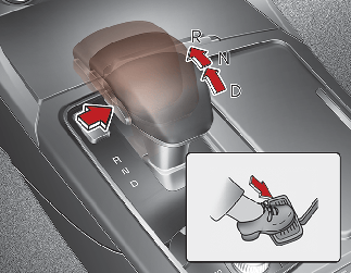 전자식 변속레버는 일반 변속레버와 달리 차량 정차 중에 「N」단에서 「D」단으로 변속하기 위해서는 브레이크 페달을 밟아야 변속되오니 주의하십시오.