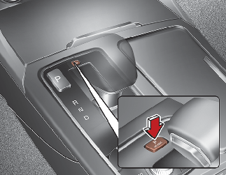 「R」, 「N」, 「D」 및 수동 변속 모드에서 「P」단으로 변속하기 위해서는 차량이 정지된 상태에서 「P」버튼을 누르십시오.