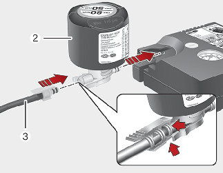 주입 호스(3)를 실런트 용기(2)에 연결하여 고정하십시오.