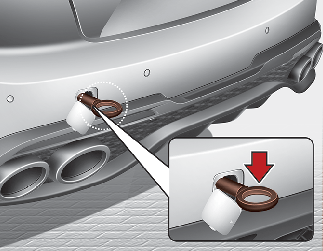 바퀴가 진흙, 모래 또는 차량 자체의 힘으로는 빠져 나올 수 없는 상태일 경우 비상 견인 고리를 이용하여 차량을 견인하지 마십시오.