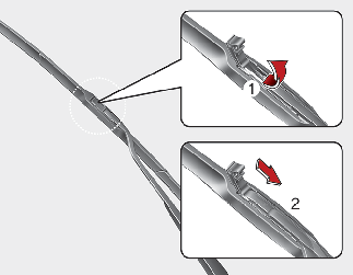 와이퍼 블레이드가 분리된 상태에서 와이퍼 암이 유리창에 닿지 않도록 주의 하십시오. 유리창이 파손될 수 있습니다.