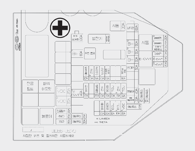 * 사양에 따라 퓨즈/릴레이 라벨이 실제 장착된 라벨과 상이할 수 있으니 박스 커버 안쪽에 부착되어 있는 퓨즈/릴레이 라벨을 참고하십시오.