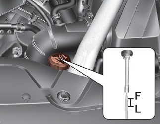 냉각수의 양은 매일 점검하여 필요시 보충하십시오. 냉각수의 양은 엔진이 차가울 때 냉각수 보조탱크 레벨 게이지에 표시되어 있는 최대선(F)과 최소선(L)사이에 있어야 합니다.