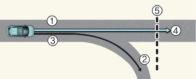 [1]: Main road, [2]: Branch line, [3]: Driving route, [4]: Set route, [5]: Curved road section