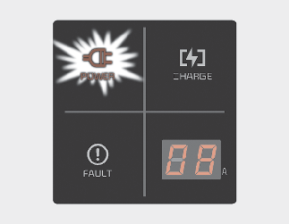 Blinker: Lading i strømsparingsmodus. Bare CHARGE-indikatoren vises. |