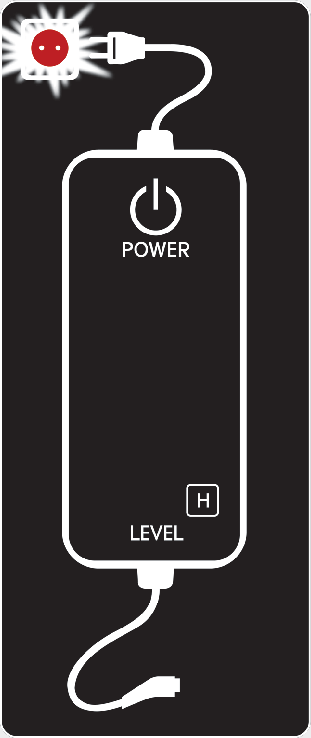 Pluggen er koblet til en kontakt (strømindikator: grønn PÅ, PÅ)