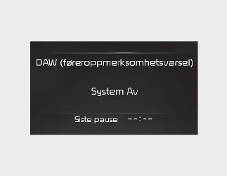 Når 'Varsel om uoppmerksom kjøring' er valgt bort i menyen Innstillinger, blir 'System av' vist.