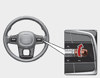Skyv bryteren + opp og hold den mens du kontrollerer angitt hastighet i instrumentpanelet. Innstilt hastighet økes til nærmeste multiplum av ti først, og økes deretter med 10 km/t (5 miles/t) hver gang bryteren betjenes på denne måten.