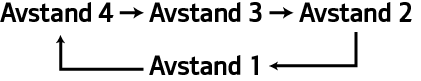 Hver gang du trykker på knappen for avstand mellom kjøretøy, endres avstanden mellom kjøretøy på følgende måte: