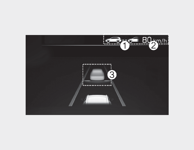 Når funksjonen er midlertidig avbrutt, vil ikke avstand til kjøretøy foran bli opprettholdt. Du må alltid følge med på veien og, ved behov, trå på bremsepedalen for å senke hastigheten din for å opprettholde en sikker avstand.