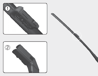 Trykk på knappen for låseklipsen på viskerbladet. Løft opp viskerbladet. Trekk deretter opp bladenheten og fjern den.