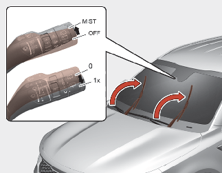 Etter å ha slått av motoren flytter du viskerbryteren til posisjon for enkeltvisking (MIST) innen 20 sekunder. Hold deretter bryteren inne i minst 2 sekunder til viskerbladet står helt opp.