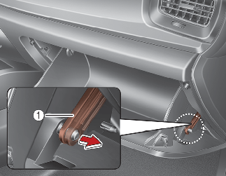 Ziehen Sie bei geöffnetem Handschuhfach an dem Stützband (1).
