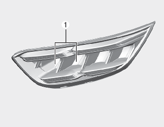 Wenn der Scheinwerfer (Fernlicht) (LED) (1) nicht funktioniert, lassen Sie das Fahrzeug von einer Fachwerkstatt überprüfen.