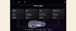 계기판, 인포테인먼트 시스템(스피커, 내비게이션), 전조등, 차량 제어기 등의 차량 시스템이 사용하는 파워 및 에너지 소모 비율을 표시합니다.