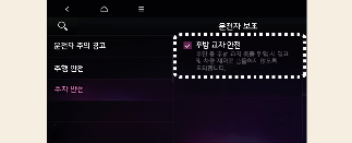 시동 'ON' 상태에서 인포테인먼트 시스템의 설정 → 차량 → 주차 안전 → 후방 교차 안전을 차례로 선택하십시오. 후방 교차 충돌방지 보조가 켜집니다.